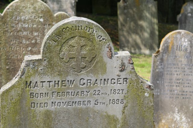 In loving memory of Ann the beloved wife of Richard Grainger of Dyers Garth, Hawes who d 20 Sep 1904 aged 84 yrs. Also of Richard Grainger who d 26 Oct 1904 aged 82 yrs.