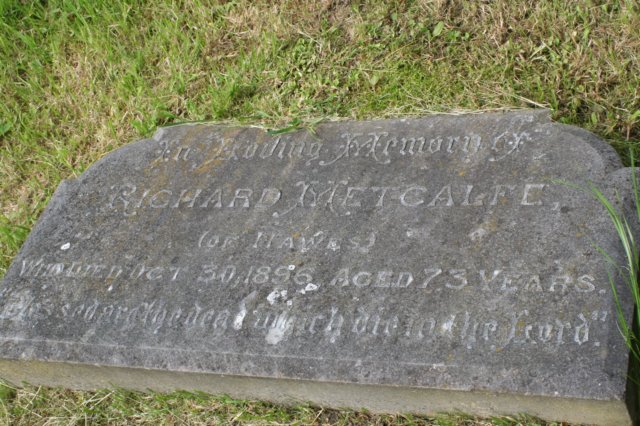 In loving memory of William Metcalfe of Gayle who d 24 Aug 1905 aged 85 yrs & of Catherine his wife who d 16 Feb 1889 aged 62 yrs. Also Margaret Constantine their dau who d 22 Jul 1873 aged 24 yrs. Also Christopher their son who d 7 Mar 1879 aged 19 yrs. Also Elizabeth Chapman their dau who d 23 Dec 1883 aged 28 yrs.