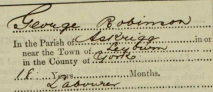 Born at Reeth c. 1788, joined the North York Regt of Militia at age 15 as a drummer, for unlimited service. He remained for 25 years and became a tailor. He would be s/o Robert of Reeth