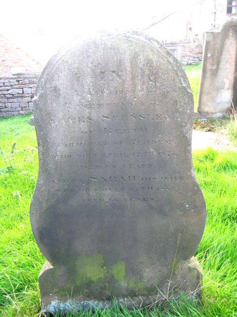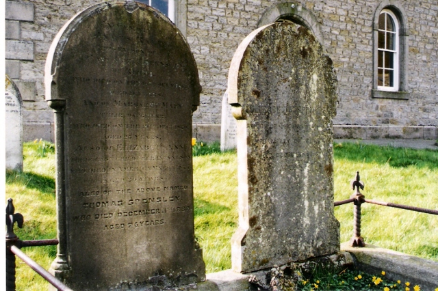 Thomas Spensley was a draper, living on Silver Street in Reeth. Two of his children died as young adults and their daughter Elizabeth married James Spensley, son of Richard Spensley & Alice Bonson who had emigrated to America. Elizabeth returned with James to live at Mineral Point and died following the birth of their second child. Her parents Thomas and Elizabeth (Milner) had moved to America to be near their only surviving daughter, but on her death returned to live in England. Thomas and Elizabeth are buried in Gunnerside Methodist graveyard.